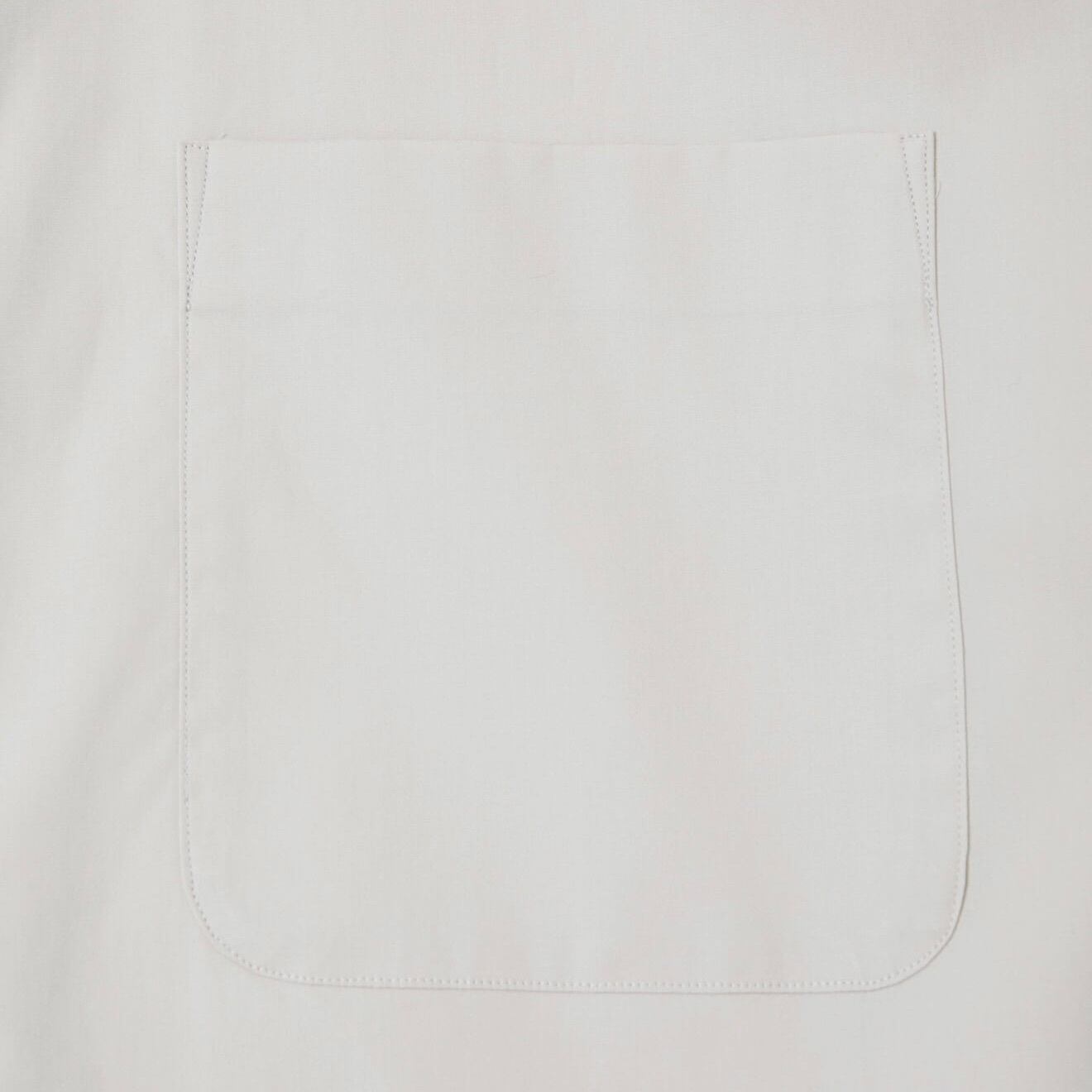100/2という細番手で毛羽の抑えられた糸を高密度で織布しており、程よいハリのある生地感でゆったりしたシルエットですが上品さがあります。
